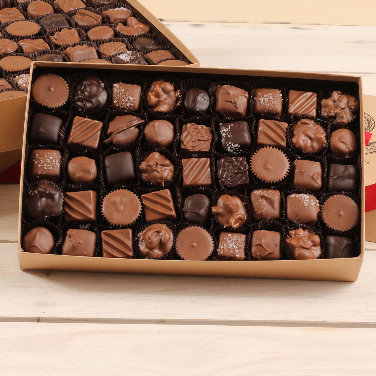 Our 3.5 lb. Deluxe Assortment is the ultimate indulgence. This grand box is filled with approximately 100 handcrafted chocolates—plenty to share (though you may not want to!).