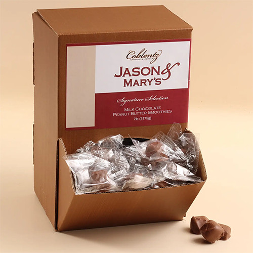 Looking for chocolates in bulk? Jason & Mary's Signature Selection Bite-Sized Treats are individually wrapped chocolates. Choose from Milk Sea Salt Caramels, Dark Sea Salt Caramels, Milk Peanut Butter Smoothies, Dark Sea Salt English Toffee, Milk English Toffee, Milk Vanilla Creams, or Caramel Candy.